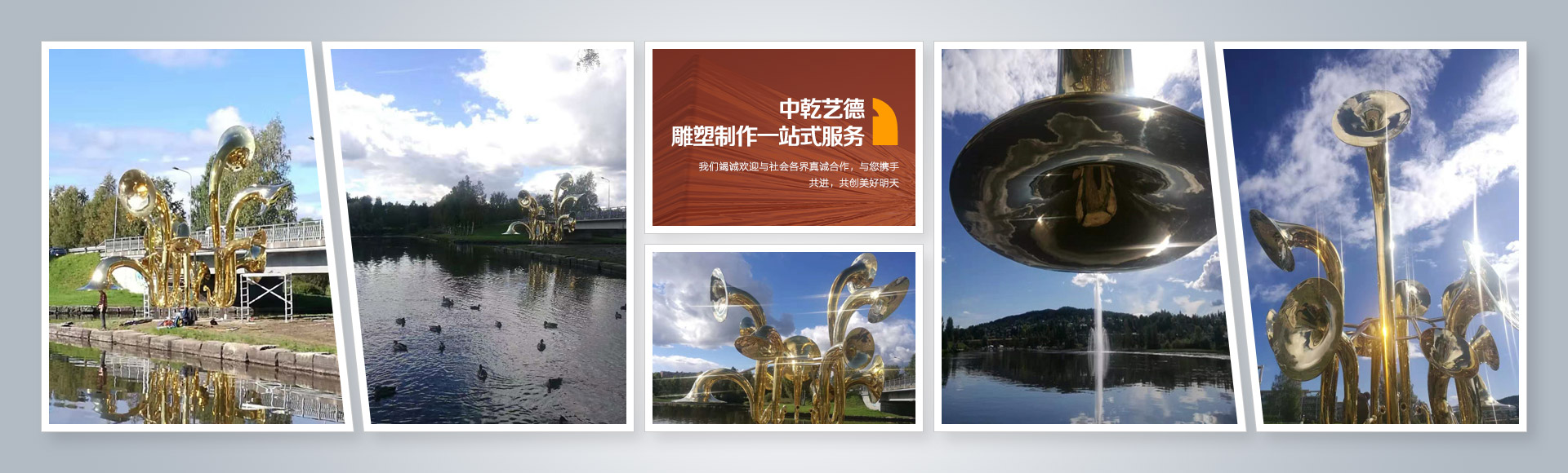 北京中乾艺德雕塑艺术有限公司是一家专业从事规划、 设计、制作不锈钢雕塑、玻璃钢雕塑、钛金属雕塑、紫铜雕塑、黄铜雕塑、圆雕、浮雕、各种大型雕塑、环境雕塑、标志性雕塑、艺术品锻造的综合型文化企业,现拥有坐落在北京市朝阳区金盏的自有厂房、机器和独立的专业制作车间。自2008年创立以来,企业效益年年上升,在雕塑艺术设计制作界更是名声鹊起,在整个雕塑行业中也称得上龙头企业。自企业开办以来,成功创作并制作的大型雕塑:如天安广场的国庆大型环艺雕塑《富贵吉祥》、《中国梦》《祝福祖国》,挪威北部的不锈钢雕塑艺术作品《鹿》、清华大学校庆张旭晨雕塑作品《源》、北京峰会《APEC》会议标志雕塑、瑞士艺术家诺特 · 维塔尔不锈钢雕塑作品《百花齐放》巴西艺术家雕塑作品《关系》上海当代艺术博物馆雕塑作品、江苏马鞍山秀山公园旅游景点雕塑作品(海豚》北京机场专机楼《北京之窗》等等,都得到了雕塑艺术家乃至社会的充分认可。